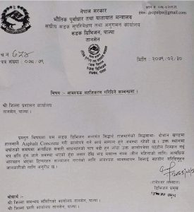 सडक डिभिजन कार्यालय पाल्पाका डिभिजन प्रमुख रामेश्वर लम्सालका अनुसार सिद्धार्थ राजमार्गको सिद्धबाबा दोभान क्षेत्रमा हालै कालोपत्रेको काम भएको र वर्षातको समयमा ठूला मालवाहक सवारी सञ्चालन हुँदा कालोपत्रेको पटहोल निस्कन गई सडक जीर्ण बन्ने हुँदा ठूला सवारी सञ्चालनलमा रोक लगाइएको हो ।